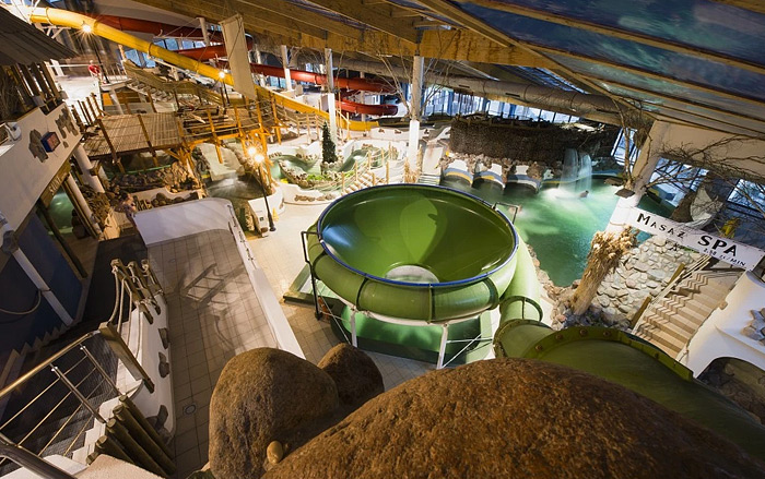 Zespół obiektów stworzony do poprawy zdrowia i dobrego samopoczucia, harmonijnie wkomponowany w naturalne piękno mazurskiej przyrody (między jeziorami Pluszne i Łańskie). To miejsce, w którym na gości czeka m.in. aquapark z takimi atrakcjami, jak baseny, zjeżdżalnie, zewnętrzne jacuzzi, rwąca rzeka, tężnie solankowe, podwodne akwaria, groty dla zakochanych i profesjonalne SPA.