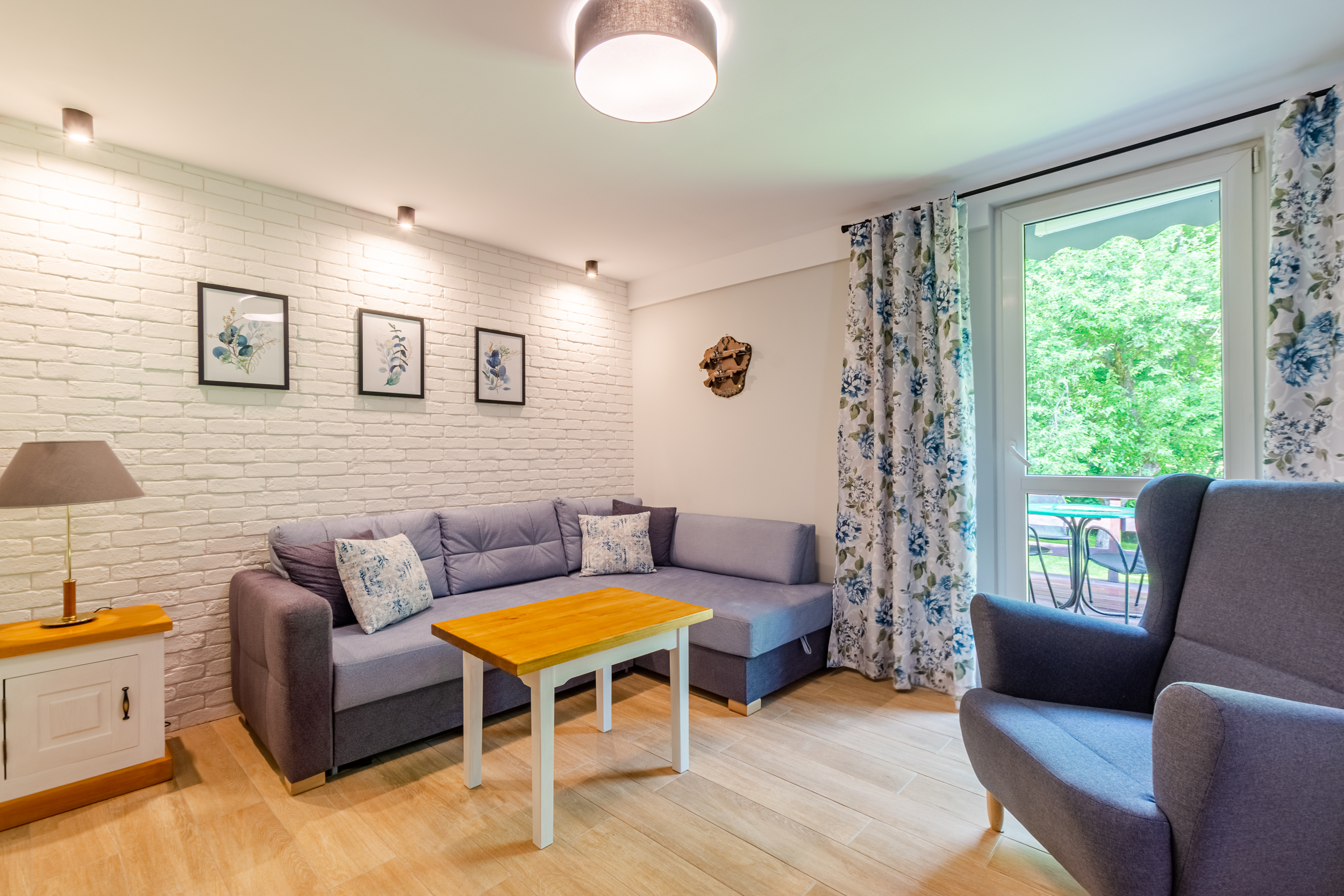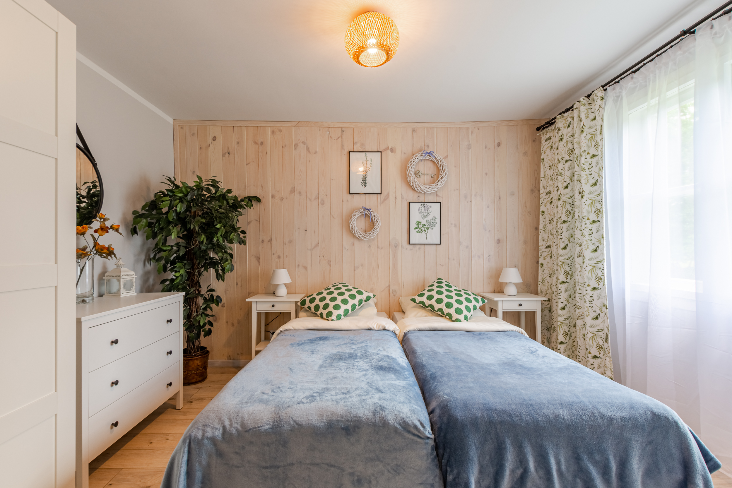 Biały domek 8-osobowy to nasz największy domek, idealny dla dużych rodzin lub grupy znajomych. Domek posiada trzy sypialnie ( w każdej po 2 lóżka) przestronny salon z rozkładanym narożnikiem oraz kominkiem. W domku znajduje się kuchnia oraz łazienka z pełnym węzłem sanitarnym. Taras wyposażony jest w meble ogrodowe. To idealne miejsce na podziwianie naszej przyrody.